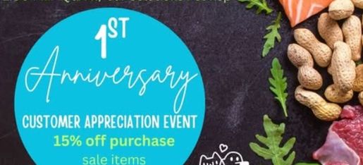 Join us for our 1st Anniversary Celebration on Saturday, January 24th and discover easy ways to improve your pet’s nutrition right at home. We’ll be serving up homemade food samples your furry friends will actually beg for (tail wags guaranteed)!